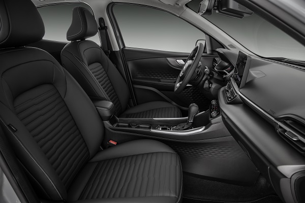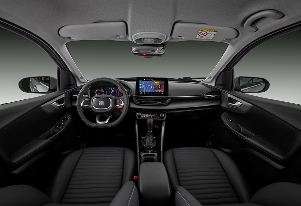 O design do interior que é clean, esportivo e futurista também chama a atenção no Fastback. O cockpit tem uma atmosfera envolvente para todos os ocupantes. Além disso, a posição do console central dá grande destaque à central multimídia e deixa todos os comandos em um só lugar ao alcance dos olhos e das mãos. Já a posição de direção mais alta transmite total sensação de segurança. Complementando essa ergonomia, os bancos são bem espaçosos, confortáveis e possuem acabamento primoroso, com tecidos suaves ao toque. Estão disponíveis o Mescla Sanchez com embossed, o couro ecológico Preto com embossed e o couro natural Steel Grey com bordado.
