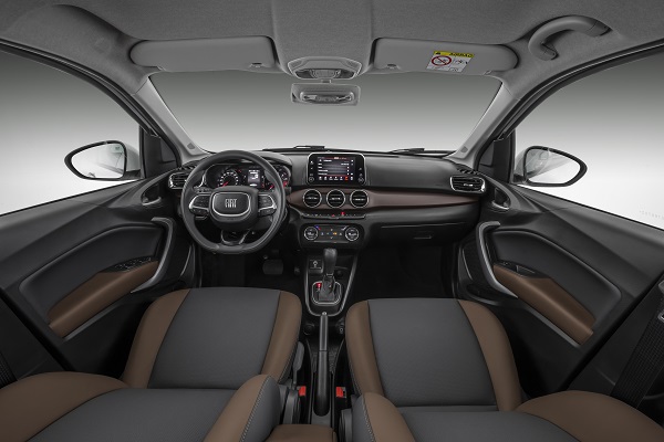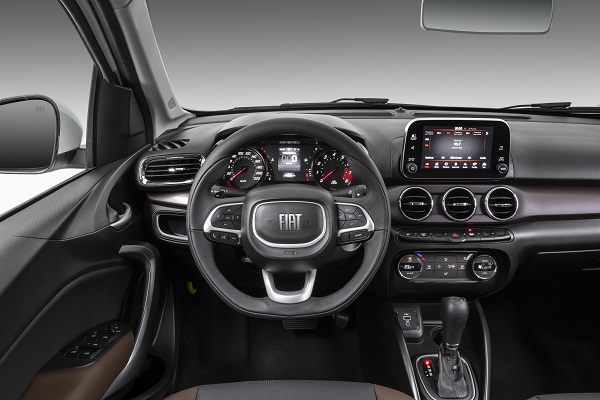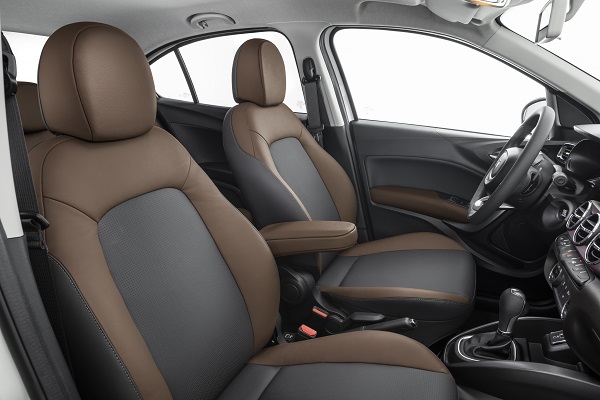A versão topo de gama da família do Fiat Cronos tem, além de todos os equipamentos da Drive 1.3 AT, roda de liga de 16″, chave presencial keyless enter n´go, ar-condicionado automático, câmera de ré com linhas dinâmicas, faróis de neblina com função cornering, espelho retrovisor elétrico, repetidor lateral de seta, luzes de cortesia sob os retrovisores, volante revestido em couro, câmbio borboleta (paddle shifters), apoio de braço dianteiro, bancos traseiros bipartidos 60/40 e maçanetas externas cromadas. Para completar, como opcional, tem interior em couro marrom.