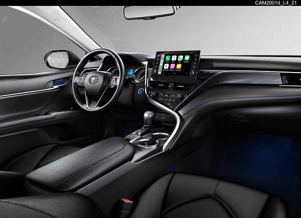 O Camry ainda conta com painel central com acabamento em soft touch e detalhes em madeira no padrão black engineered wood, além de adornos cromados. E, para oferecer um toque de requinte, exclusividade e personalidade, vem com teto solar panorâmico com abertura elétrica e sistema de iluminação ambiente com LEDs, que, além de proporcionar um ambiente agradável, acentuam os detalhes e os materiais internos.