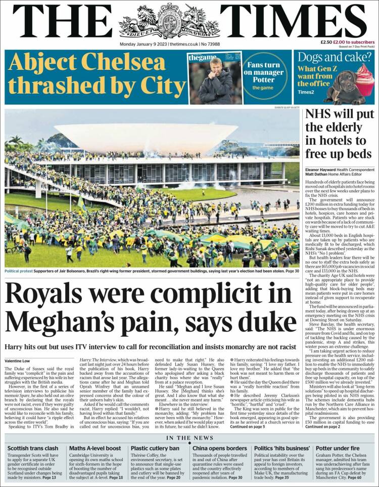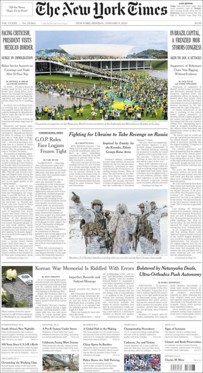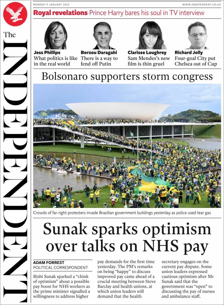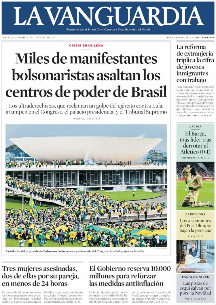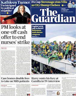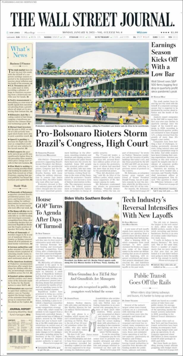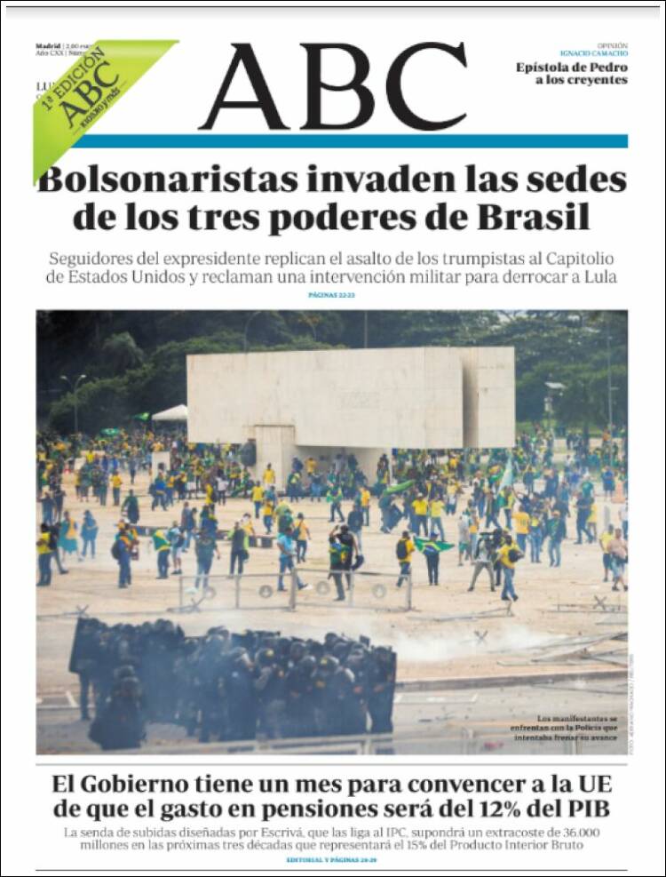 Os atos terroristas praticados por extremistas bolsonaristas neste domingo, em Brasília, ganhou grande repercussão na imprensa dos Estados Unidos, dos países da Europa e da América Latina. A invasão do Congresso Nacional, STF e Palácio do Planalto foi manchete de boa parte da imprensa estrangeira nesta segunda-feira (9). O americano The Sall Street Journal destacou: “Manifestantes pró-Bolsonaro atacam o Congresso e a Alta Corte do Brasil”. O britânico The Guardian afirmou: “Invasão no estilo do Capitólio no Brasil: apoiadores de Bolsonaro atacam Congresso”. Confira abaixo as capas dos jornais.