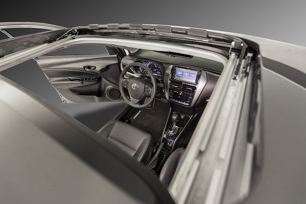 Para as versões XS e XLS, o novo Yaris 2023 conta com ar-condicionado automático e digital, com filtro antipólen. E, nas versões topo de linha, os consumidores têm uma visão privilegiada, graças ao teto solar elétrico, com acionamento one touch e função antiesmagamento, que oferece ainda mais sofisticação e praticidade.